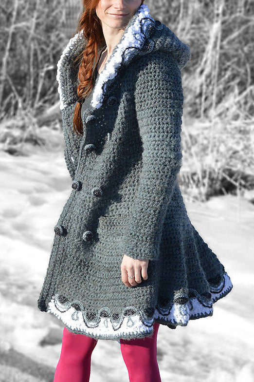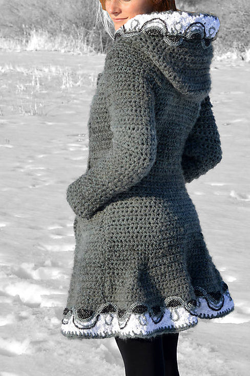 Women Casual Plus Size Long Sleeve Silver Rose Sweater With Hat